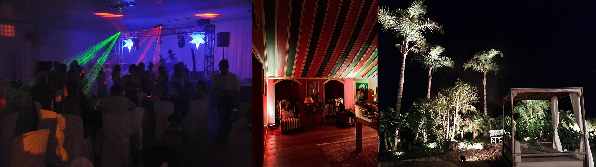 Pacotes completos com som, luz para pista de dança, iluminação ambiente e efeitos especiais